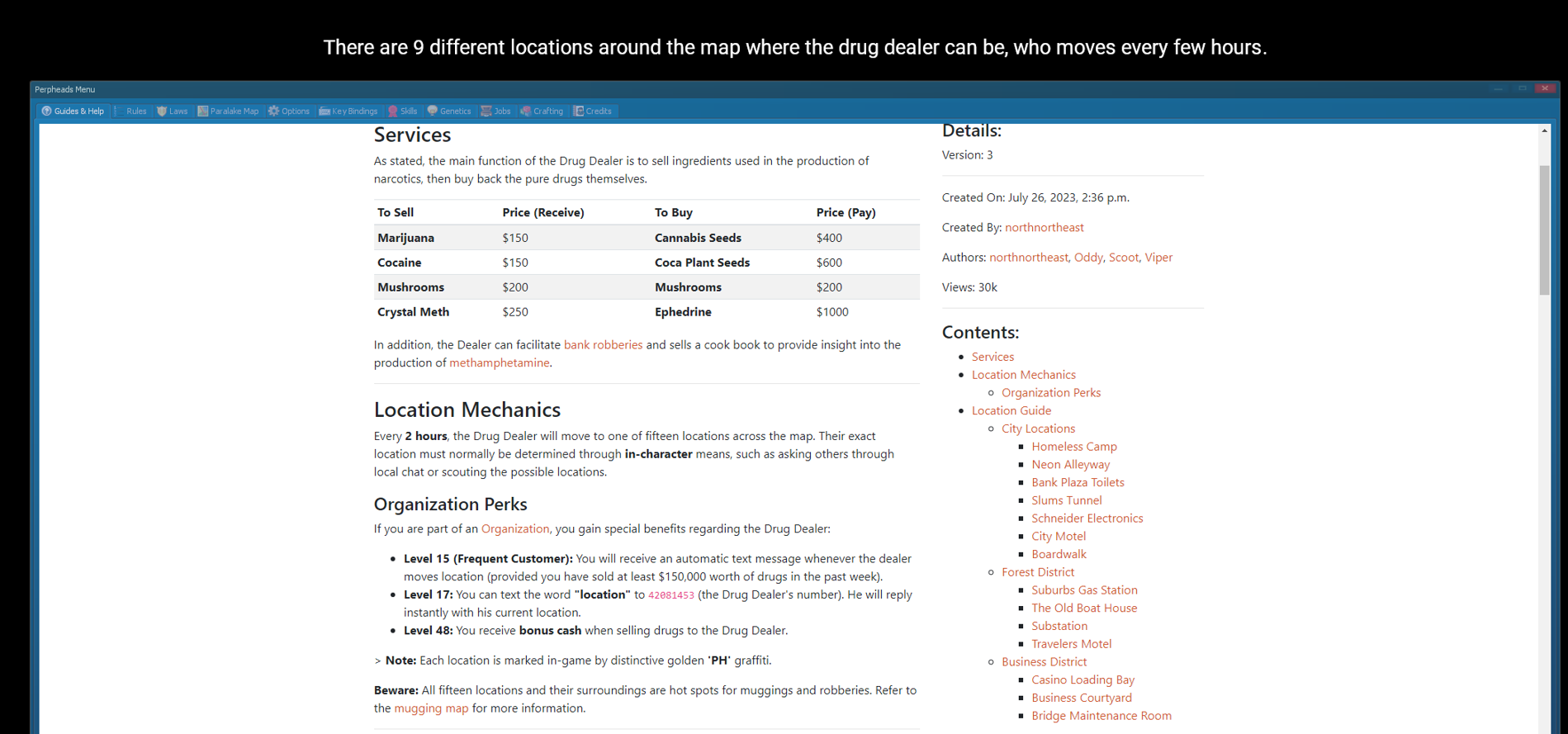 How to reproduce the Bug: While dead, one of the tips says "There are 9 different locations around the map where the drug dealer can be-"